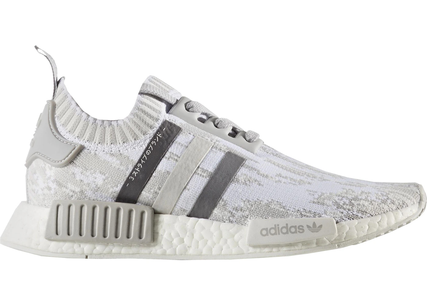 This women's adidas NMD R1 was a part of the October 2017 "Japan" Pack. A women's edition, they come in a triple-grey colorway. Sporting a grey-based Glitch Camo Primeknit upper with each stripe on the sides in a different shade with "The Brand With Three Stripes" written in Japanese. A white Boost cushioned midsole and light grey outsole finishes things off. Their release date was October 14th, 2017 where they were available at select adidas Originals retailers worldwide. Available in women's sizes, they retailed for $170. If you like the "Glitch Camo" editions of the adidas NMD R1, this is another must-have pair. - Style BY9865 - Colorway Grey/Grey/Grey - Retail Price 170 - Release Date 2017-10-14 - Featured false - Product Line adidas NMD