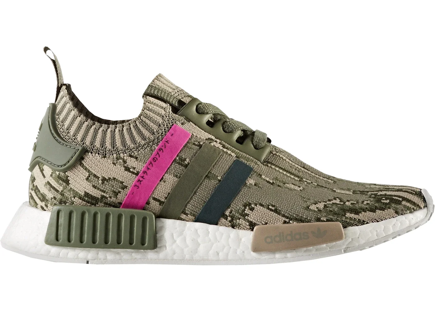 This women's adidas NMD R1 takes the "camo" theme full circle. A part of the "Japan" Pack, they come in a camouflage themed sergeant major, green night and shock pink colorway. They feature a green-based Glitch Camo Primeknit upper with each stripe on the sides coming in a different color. A white Boost cushioned midsole and light grey outsole finishes things off. Their release date was October 14th, 2017 where they were available at select adidas Originals retailers worldwide. Available in women's sizes, they retailed for $170. If you like the "Glitch Camo" editions of the adidas NMD R1, this is another must-have pair. - Style BY9864 - Colorway Sergeant Major/Green Night/Shock Pink - Retail Price 170 - Release Date 2017-10-14 - Featured false - Product Line adidas NMD