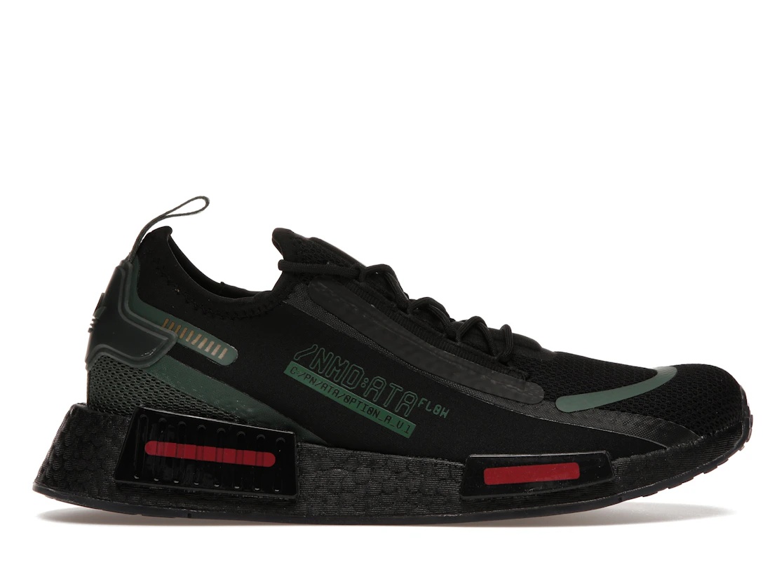 The adidas NMD R1 SPECTOO Star Wars Boba Fett is a sneaker from the adidas x Star Wars collection, inspired by the legendary Boba Fett’s armor from the film Star Wars saga. Dressed in Core Black, Green Oxide, and Bliss, this adidas NMD features a PrimeKnit upper in a predominantly black color scheme highlighted by contrasting green hues. Boba Fett’s crest logo on the tongue, clone number on the side panels, and jetpack on the heel highlight the sneaker’s theme. Other details include the adidas Trefoil logo on the heel, ‘NMD’ branding throughout the upper, black laces, and branded insoles. A black Boost foam midsole with black and red EVA plugs on the forefoot and heel rests on a matching Continental Rubber outsole. Our experts particularly love this sneaker’s design and colorway. The Boba Fett-inspired theme and unique design make it a standout piece, especially for fans of the Star Wars franchise. The adidas NMD R1 SPECTOO Star Wars Boba Fett was released on December 30th, 2021, retailing at $150. - Style GX6791 - Colorway Core Black/Green Oxide/Bliss - Retail Price 150 - Release Date 2021-12-30 - Featured false - Product Line adidas NMD
