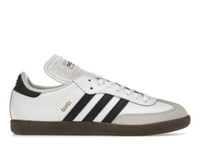 The upper part of the adidas Samba Classic White is constructed entirely of synthetic leather, which increases both its durability and lightness. The Samba Classic by adidas in white color has a suede overlay that increases its protection for its upper part and resistance to abrasion. Additionally, this shoe has a die-cut EVA cushioning for lightweight comfort and a rubber outsole with non-marking tread for superior traction on all interior surfaces. The sneaker also features a thick outsole that comes in black color. The adidas Samba Classic White, at the time of its market debut on the 25th of June, 2022, had a suggested retail price of $90. - Style 772109 - Colorway Running White/Core Black/Running White - Retail Price 90 - Release Date 2017-01-16 - Featured false