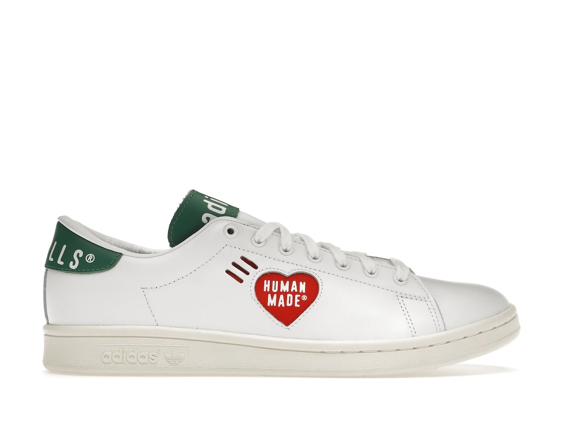 The adidas Stan Smith Human Made White Green results from a partnership with Nigo's heritage-inspired menswear brand, Human Made, introducing a fresh interpretation of the sneaker. The Human Made White Green adidas Stan Smith white leather upper substitutes the traditional perforated 3-Stripes on the lateral side with Human Made's distinctive red heart logo, and the green heel tab features a distinctive inscription. The tongue bears the adidas branding in a coordinating green hue, and the shoe rests on a timeless off-white rubber cupsole for support. The outsole is crafted from a rubber compound that ensures reliable traction and longevity, maintaining its grip on various surfaces. What our experts find outstanding about the adidas Stan Smith Human Made White Green is the alterations it brings to the classic Stan Smith design. Most notably, it replaces the iconic perforated 3-Stripes, offering a stylized interpretation. Additionally, the inscription of 'Dry Alls' on the green heel tab adds a unique touch of heritage-inspired branding. The sneaker debuted for $140 on the 6th of August 2020. - Style FY0734 - Colorway Cloud White/Off White/Gold Metallic - Retail Price 140 - Release Date 2020-08-06 - Featured false