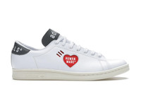 The adidas Stan Smith Human Made White Grey pools the efforts of Stan Smith, the tennis champion, and the Human Made brand by Nigo. A white rubber outsole and sail midsole are the start of the minimalist design adopted by the adidas Stan Smith. On the upper is white leather with exposed stitching showing the mudguard boundaries. On the eye stays are punched eyelets with white metal aglets with crisp white laces. The quarter panels have different finishes – the medial presents the slanted dotted patterns representing adidas’ three stripes, while the lateral has red accents on the heart logo of the Human Made brand. The heel counter consists of black leather with an imprinted DRY ALLS branding. Our experts like the simple design on the adidas Stan Smith Human Made White Grey. Seamless white surfaces, with the only overlays on the tongue and counter in black, present an elegant, uncluttered finish. This sneaker was released on August 6th, 2020, and its price was $140. - Style FY0735 - Colorway Cloud White/Off White/Gold Metallic - Retail Price 140 - Release Date 2020-08-06 - Featured false - Product Line adidas Stan Smith