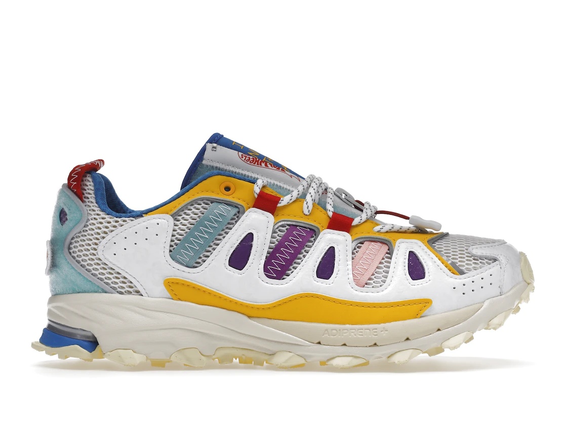 The adidas Superturf Adventure Sean Wotherspoon x Hot Wheels boast a seven-color palette that immediately catches the eye with shades like purple, baby blue, and pink on the textile lining. The shoe tongue is equipped with a zipper, enhancing both style and functionality. Bright red tones on the eyelets and heel tabs provide a bold contrast to the other colors, making them stand out even more. An intriguing Earth motif subtly weaves through the design, hinting at adventure and exploration. The midsole of the Superturf Adventure Sean Wotherspoon x Hot Wheels features AdiPrene cushioning technology, ensuring comfort and impact absorption. A standout feature of this shoe that our experts appreciate is the ability to personalize your sneakers with interchangeable Velcro graphic patches featuring the iconic "Hot Wheels" logo. This customization option adds a touch of nostalgia to your footwear. The adidas Superturf Adventure Sean Wotherspoon x Hot Wheels was launched on August 25th, 2022 at a retail price of $160. - Style GX9682 - Colorway White/Yellow/Blue/Purple - Retail Price 160 - Release Date 2022-08-25 - Included Accessories Earth Patch, Hot Wheels PatchSW logo Patch, Sun Patch - Featured false