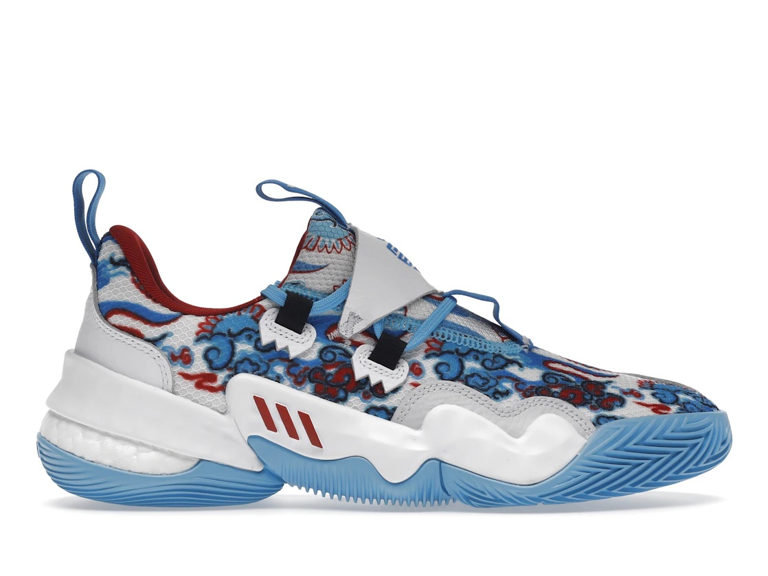The adidas Trae Young 1 Chinese New Year is an offering from the adidas Trae Young 1 lineup released to celebrate the 2022 Chinese New Year. This adidas Trae Young 1 features a mesh upper adorned with graphics that honor the Chinese culture in Sky Rush, Blue Rush, Core Black, and red and white leather overlays on the tongue and heel. More Chinese characters appear on the tongue, pull tab, and insoles. Other details include a red sock liner, Trae Young’s signature logo on the tongue pull tab, black eyelets, and Sky Rush laces. Rounding out the design is a Boost-cushioned sole unit featuring a white midsole with red 3-Stripes detailing on the lateral atop a light blue treaded rubber outsole. Something we love about this sneaker is its colorway, which captures the energy of the Lunar New Year celebration. The adidas Trae Young 1 Chinese New Year was made available on February 1st, 2022. Initially, it retailed at $130. - Style GY0300 - Colorway Sky Rush/Blue Rush-Core Black - Retail Price 130 - Release Date 2022-02-01 - Featured false - Product Line adidas Trae Young