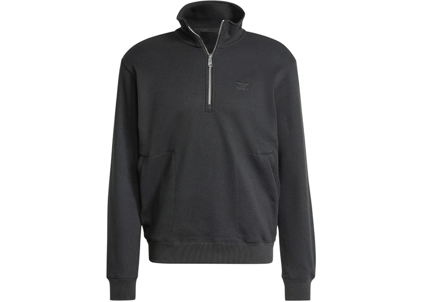 adidas Trefoil Essentials Waffle 1/Zip Sweatshirt Black