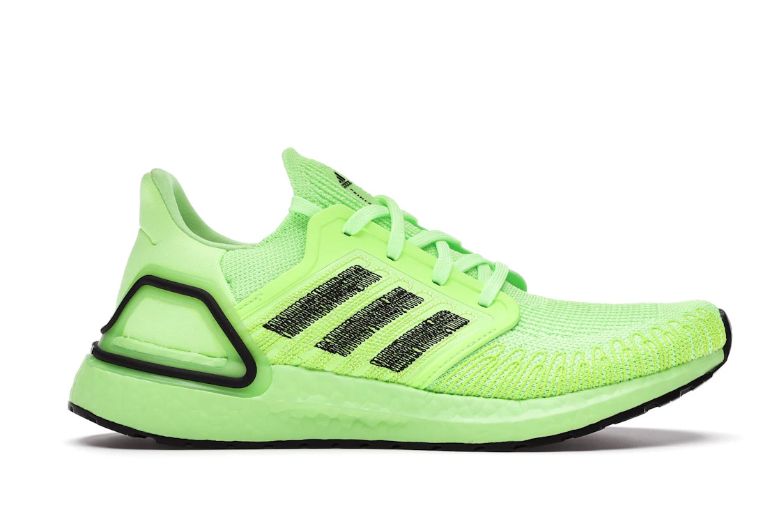 The adidas Ultra Boost 20 Signal Green is a high-performance running shoe presenting in a signal green and core black color scheme. The Signal Green adidas Ultra Boost 20 boasts a predominant signal green Primeknit upper, and you’ll notice the tailored fiber placement technology in the toe box. The reinforced toe box tech adds durability and stability by holding the toe and foot in place. The synthetic lace holder is a tonal signal green that is adorned by the iconic 3-stripes in black and in an embroidered style. Matching laces and adidas branding on the tongue round out this sneaker. We’d have to say that the standout feature of the adidas Ultra Boost 20 Signal Green is the supportive 3D heel cage, meant to cradle the heel and hold it in place. As it’s positioned over the Boost midsole, it adds even more stability. When it debuted on April 7, 2020, this shoe had a price point of $180. - Style EG0710 - Colorway Signal Green/Core Black/Signal Green - Retail Price 180 - Release Date 2020-04-07 - Featured false - Product Line adidas Ultra Boost