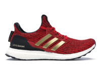 Defend your very own kingdom after buying the women's adidas Ultra Boost 4.0 Game of Thrones House Lannister (W). This Ultra Boost 4.0 comes with a red upper plus black accents, three gold adidas stripes, white midsole, and a black sole. These sneakers released in March 2019 and retailed for $180. - Style EE3710 - Colorway Red/Gold/Black - Retail Price 180 - Release Date 2019-03-22 - Featured false