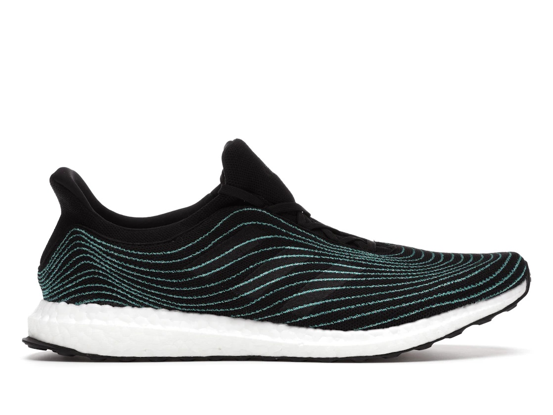 The adidas Ultra Boost DNA Parley Black (2020) combines high-performance running technology with sustainability. The sneaker showcases a black colorway with subtle detailing. The Primeknit upper provides a snug, sock-like fit, offering breathability and flexibility. The Boost midsole, a hallmark of the Ultra Boost line, ensures exceptional cushioning and responsiveness, resulting in a comfortable ride and energy return. The Torsion System technology in the midfoot enhances stability and supports natural foot movement. Additionally, the Continental Rubber outsole offers excellent traction and durability on various surfaces. One of its notable features is the upper construction, which is made from recycled plastic materials, specifically upcycled ocean plastic. This collaboration between adidas and Parley for the Oceans aims to reduce environmental impact by repurposing marine plastic waste. To stick with the marine concept, wavy lines of Contrast Blue stitching and tonal embroidered Three-Stripes are added to the design. The adidas Ultra Boost DNA Parley Black (2020) was released on June 8th, 2020. It originally retailed at a price of $180. - Style EH1184 - Colorway Core Black/Core Black/Blue Spirit - Retail Price 180 - Release Date 2020-06-08 - Featured false - Product Line adidas Ultra Boost