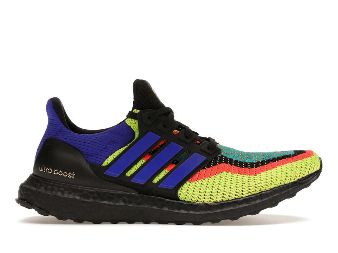 The adidas Ultra Boost DNA What The Core Black adds bright colors to its iconic running shoe silhouette in order to deliver not only comfort and momentum, but bright style to every stride. The What The Core Black adidas Ultra Boost DNA features an upper crafted of comfortable, breathable Primeknit in bright hues of yellow, orange, black, green, and bright blue. Black TPU forms a stabilizing heel counter as well as a side panel cage that integrates into the eye stays for midfoot support. This black cage sports the iconic three stripes in bright blue TPU. The black Ultra Boost midsole provides springy cushioning and energy return and rests atop a black Continental rubber outsole that uses Stretchweb technology to offer flexibility and arch support. Our favorite detail on this sneaker is the subtle gold branding on the upper. Ultra Boost branding hits the heel, while adidas branding hits the tongue tag. The adidas Ultra Boost DNA What The Core was released on November 1, 2020, for $180 retail. - Style FW8711 - Colorway Core Black/Cloud White/Solar Red - Retail Price 180 - Release Date 2020-11-01 - Featured false - Product Line adidas Ultra Boost - Styles Headwear