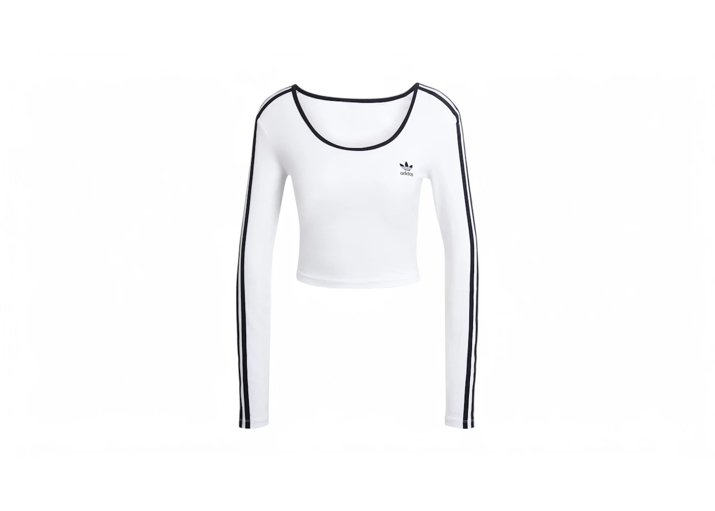 adidas Women's Adicolor 3-Stripes Long Sleeve Crop Long-Sleeve Top White