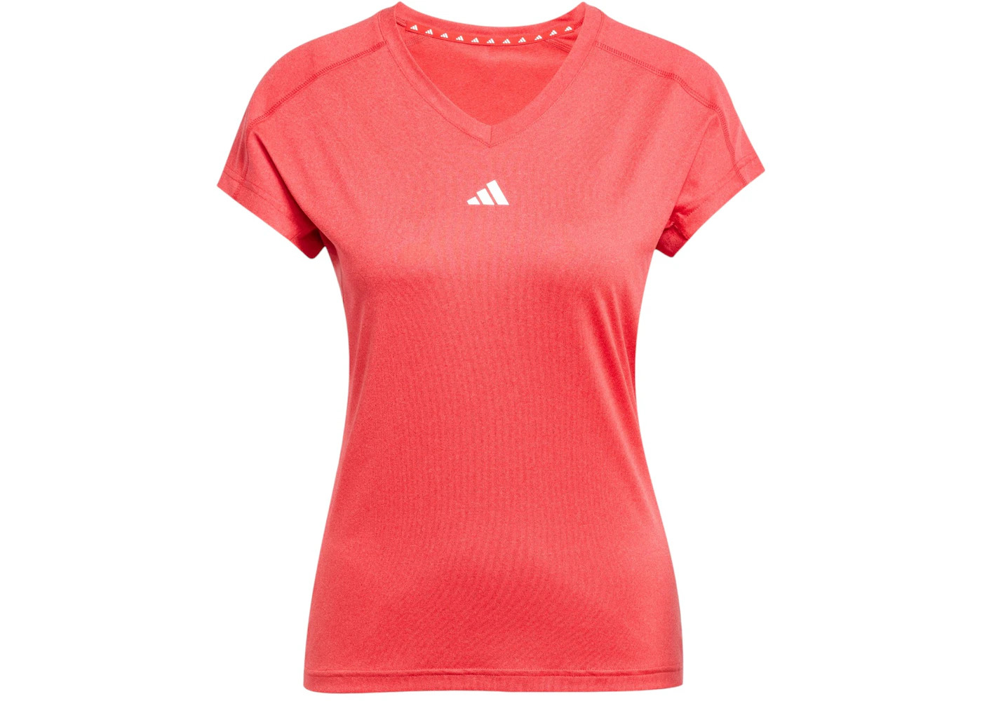 adidas Women's Aeroready Train Essentials Minimal Branding V-Neck T-Shirt Pure Ruby/White