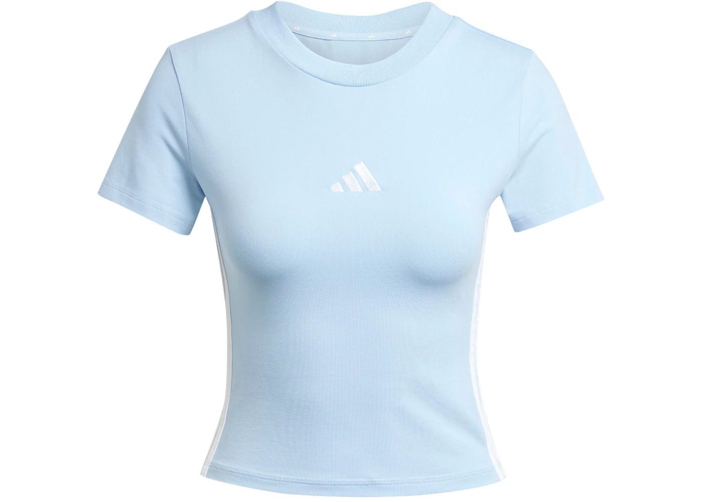 adidas Women's Essentials 3-Stripes Slim Baby T-Shirt Glow Blue/White