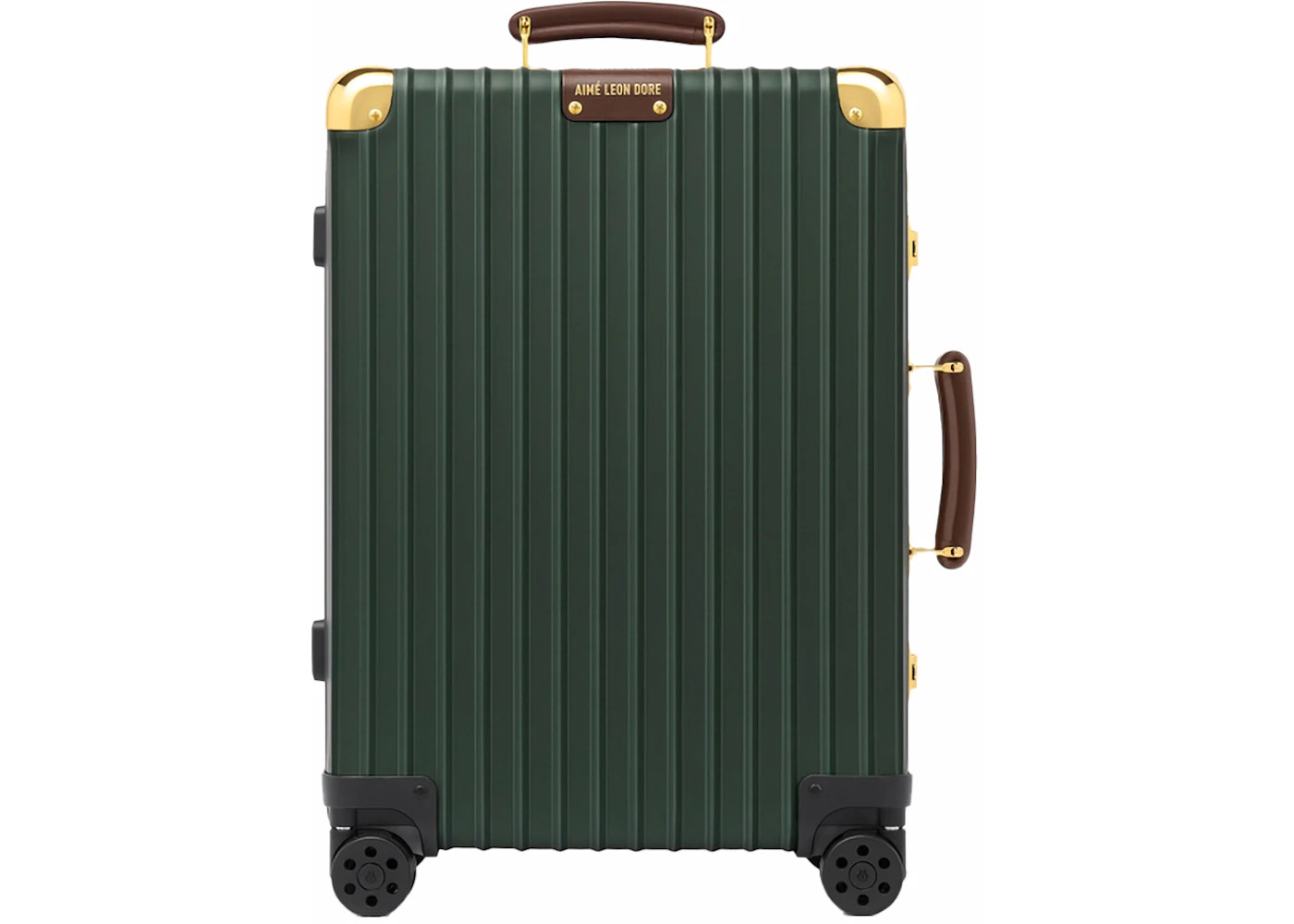 The Aime Leon Dore x Rimowa Classic Cabin Green measures 21.7 x 15.8 x 9.1 inches and is a suitable size to carry on an airplane. This cabin bag is part of the Rimowa classic collection, which includes features such as an interior nylon lining, an adjustable divider, and leather-made handles and straps. TSA-approved locks and a brown leather luggage tag match perfectly with the bag. This luxurious suitcase is constructed of aluminum for sturdiness and durability. It is made by Rimowa, a German company known for designing and producing high-end luggage. Our team likes the vintage look of the Aime Leon Dore x Rimowa Classic Cabin Green. It is dark green and looks a lot like a trunk. We are also impressed with its signature wheel system for easy steering. This suitcase was part of Rimowa's Spring/Summer 2024 line. The original retail price for this item was $2,670 when it was released on May 31, 2024. - Season SS24 - Color Green - Release Date 2024-05-31 - Retail Price 2670 - Featured false - Requester Kelsey K - Uploaded By LL