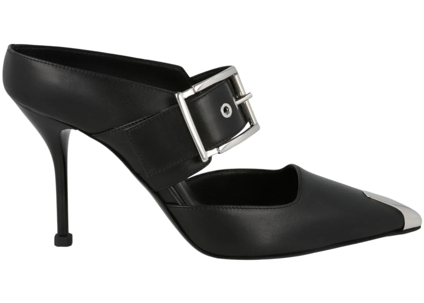 Alexander McQueen Buckle Leather Mules Black Silver (Women's)