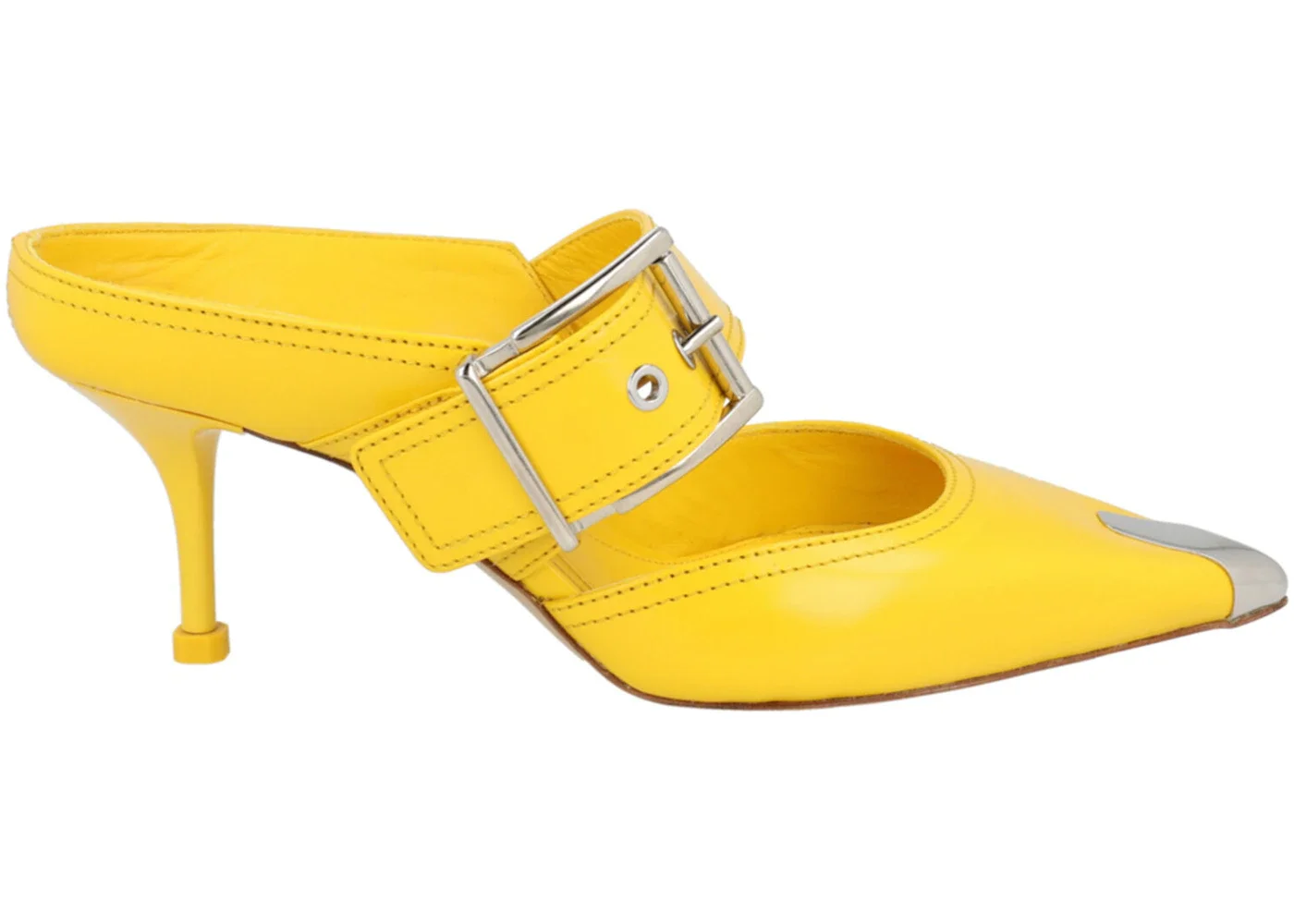 Alexander McQueen Buckle Leather Mules Pop Yellow Silver (Women's)
