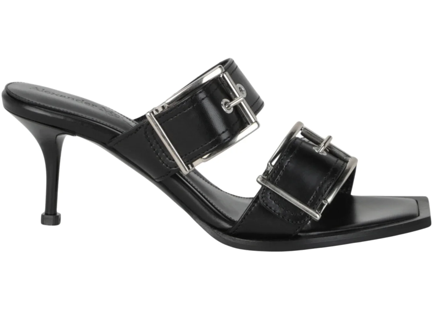Alexander McQueen Double Buckle Punk 3 In Mules Black Silver (Women's)