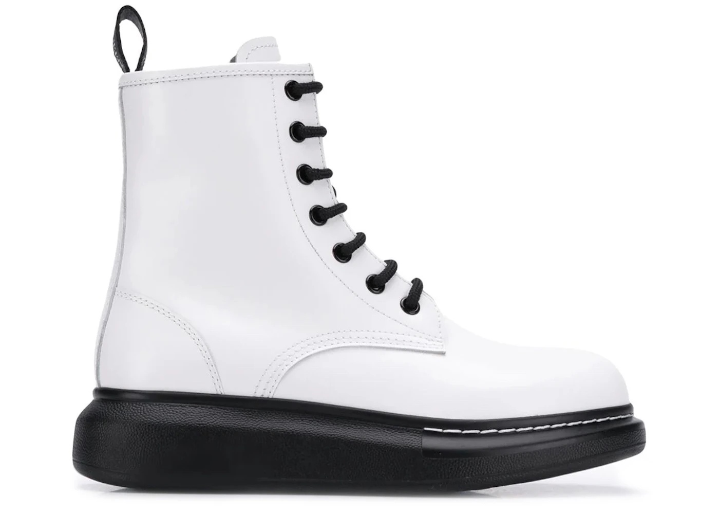 Alexander McQueen Glossed-Leather Platform Ankle Boot White Black (Women's)