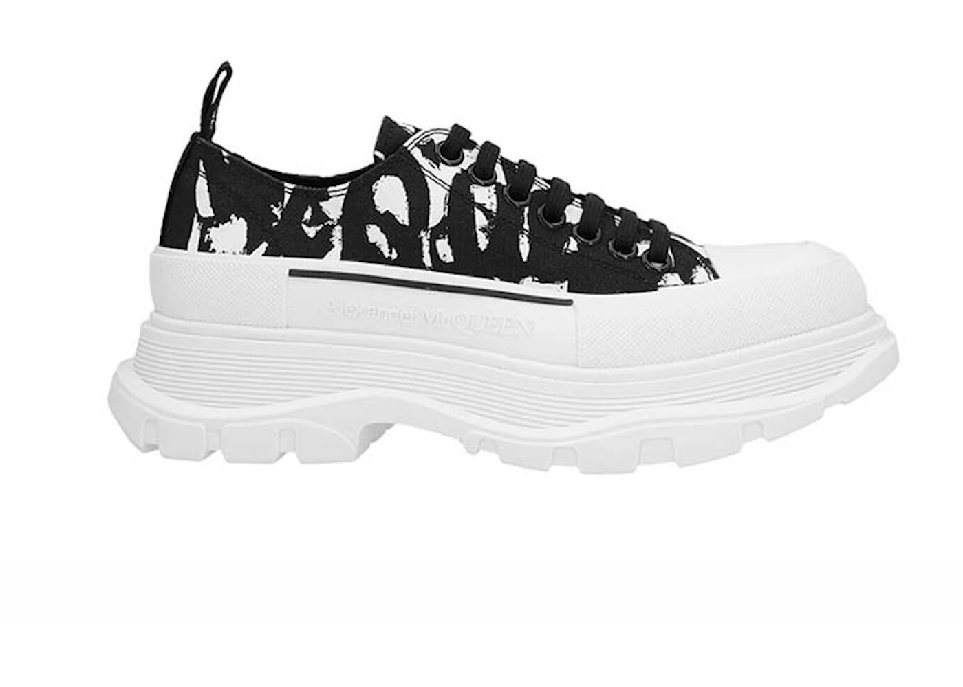 Alexander McQueen Graffiti Tread Slick Low Lace Up Black White