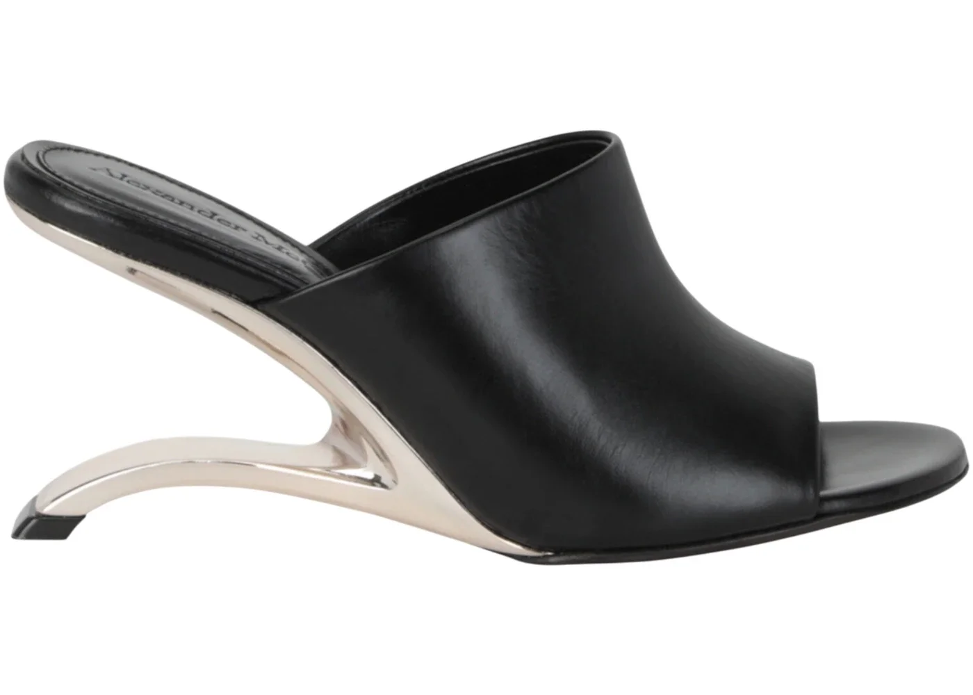 Alexander McQueen Leather Arc Mules Black Silver (Women's)
