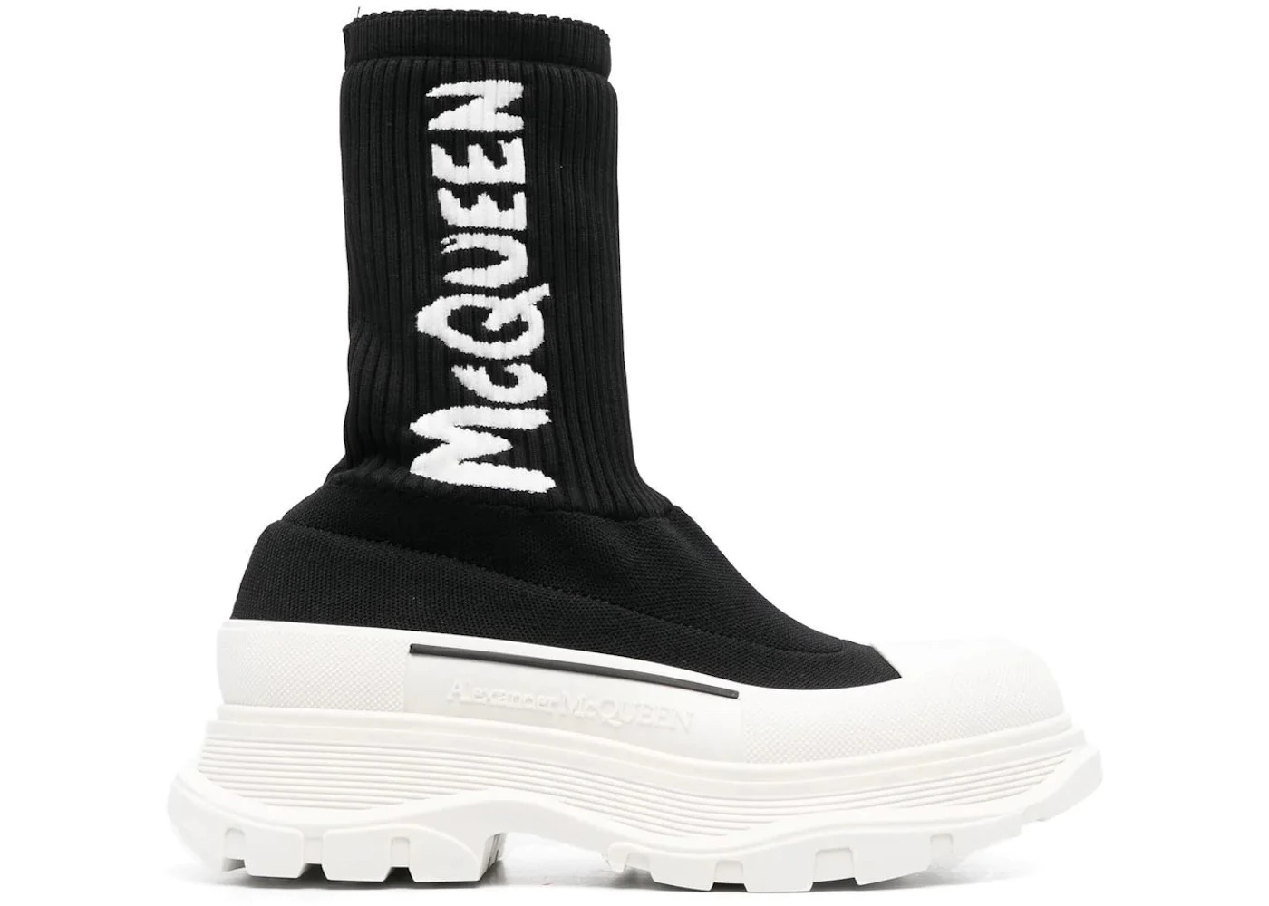 Mcqueen Graffiti Knit Tread Slick Boot in Black/white