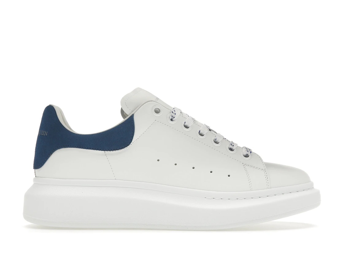 DISCLAIMER: The included laces for this product vary by season. The Alexander McQueen Oversized Paris Blue was released as a part of the brand's permanent collection. The Paris Blue Alexander McQueen Oversized has an upper that is made from high-quality Italian leather and features a white colorway with blue accents. The upper also includes a suede overlay at the heel with the Alexander McQueen logo. The midsole of the Alexander McQueen Oversized Paris Blue is a chunky rubber sole that provides added height and support for the foot. The outsole is made of a durable rubber to provides traction and durability for the shoe. The outsole features a textured design that ensures maximum grip on various surfaces. The tongue is padded and the insole of the shoe is made from a leather material that conforms to the wearer's foot, providing comfort and support. The insole is also cushioned to add an extra layer of comfort for the foot. The Alexander McQueen Oversized Paris Blue was released on March 1st, 2020 at a retail price $490. - Style 553680 WHGP7 9086 / 553680 WIEF1 9086 / 553680 WIAIH 9086 - Colorway White - Retail Price 490 - Release Date 2020-03-01 - Featured false