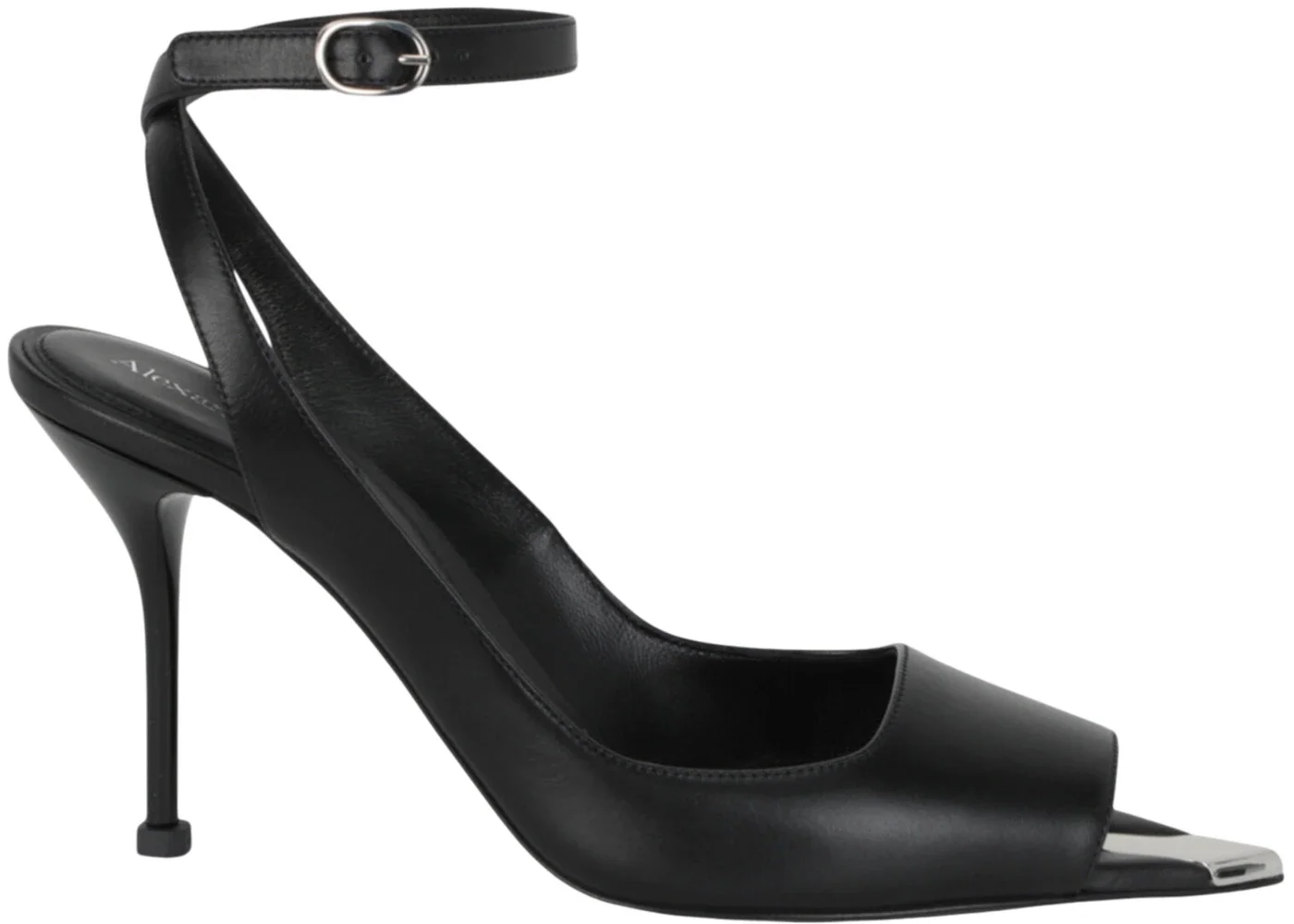 Alexander McQueen Punk Peep Toe 4 In Sandals Black Silver (Women's)