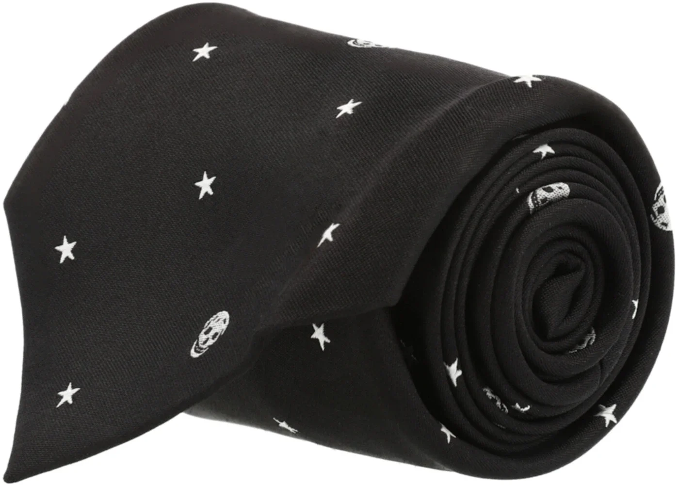 Alexander McQueen Stars And Skulls Silk Tie Black Ivory