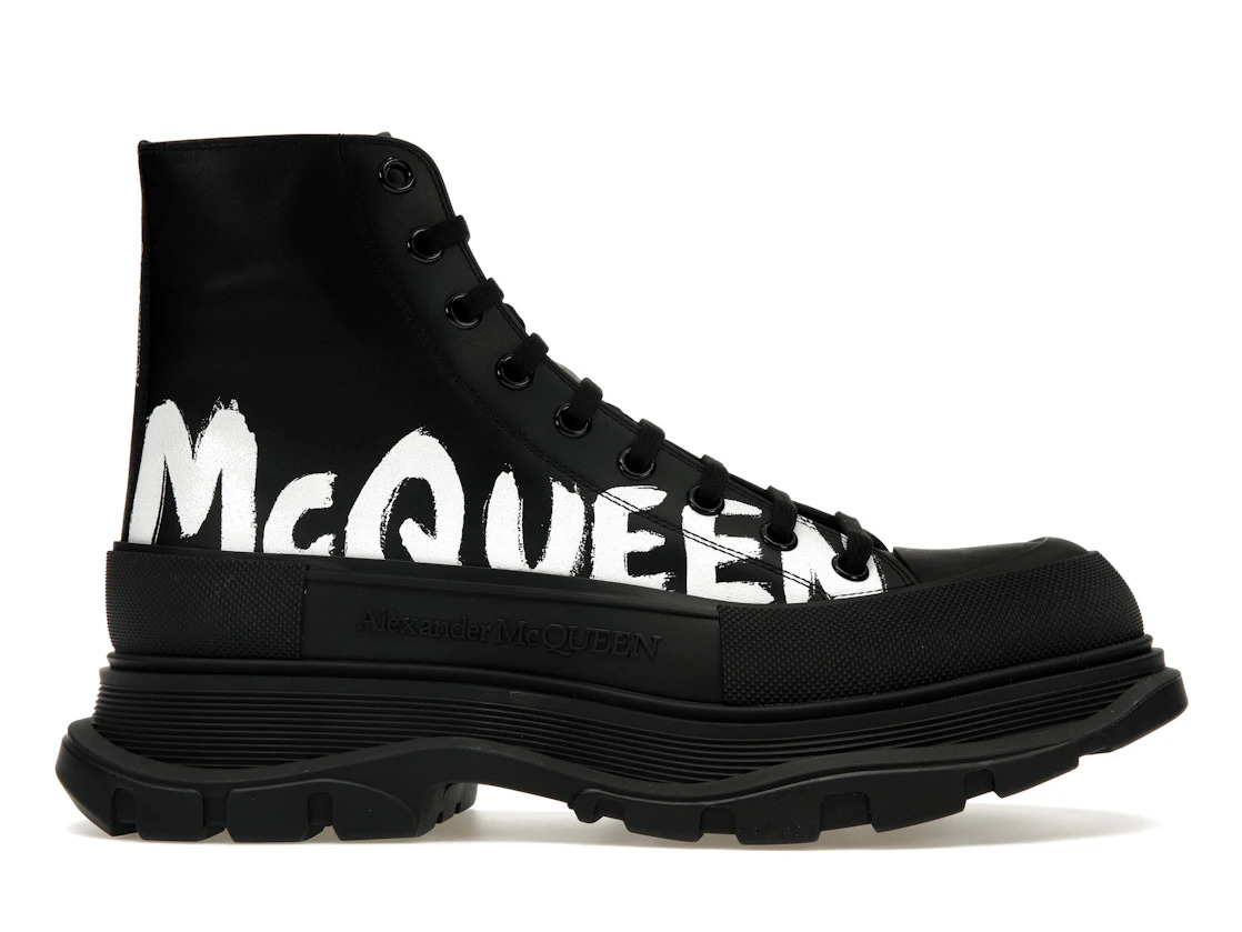 Alexander McQueen Tread Slick Boot Leather Graffiti Black White