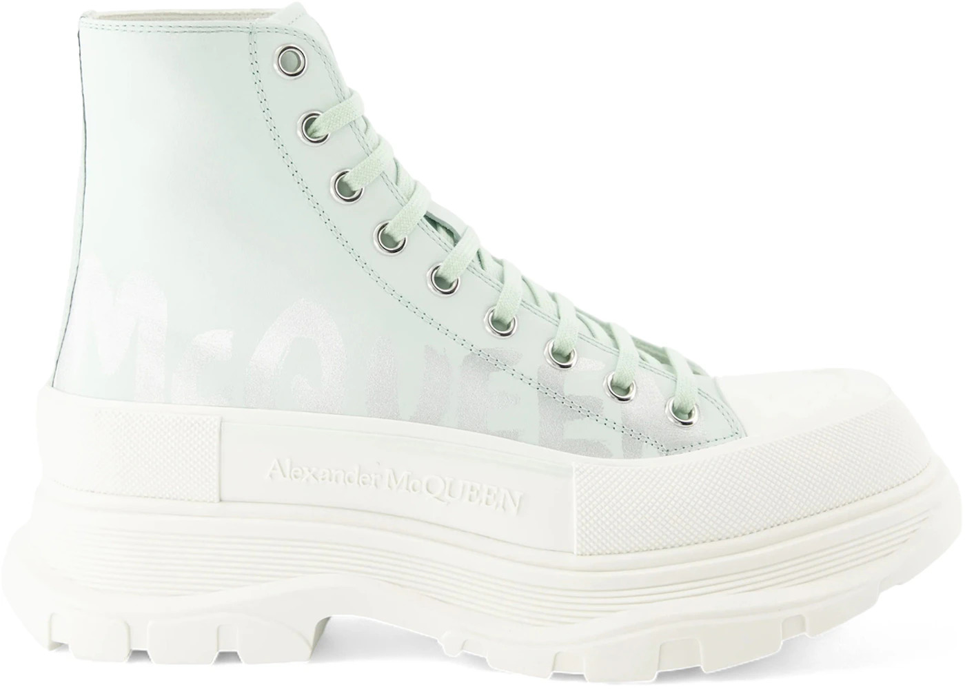 Alexander McQueen Tread Slick Boot McQueen Graffiti Logo Pastel Green