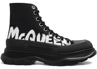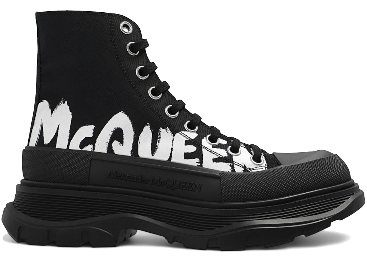 Alexander McQueen Tread Slick High Top Sneakers McQueen Graffiti Logo Black White (Women's)