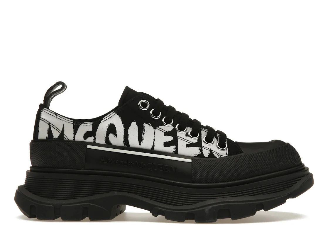 Alexander McQueen Tread Slick Low Lace Up Canvas Graffiti Black White Black (Women's)