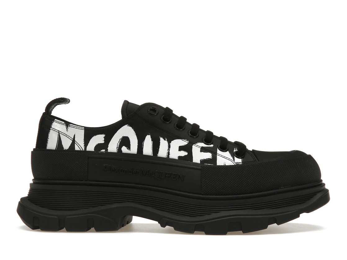 Alexander McQueen Tread Slick Low Lace Up Graffiti Black Black White
