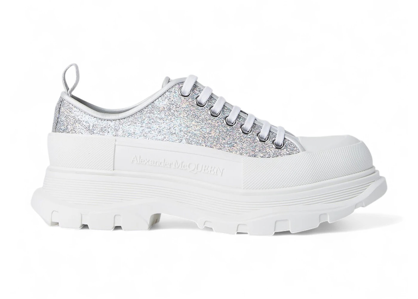Alexander McQueen Tread Slick Low Lace Up White Silver