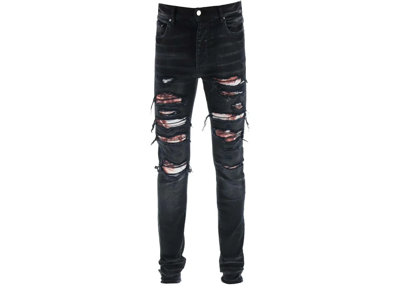 AMIRI Logo Patch Ripped Slim Cut Jeans Black