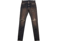 AMIRI MX1 Plaid Distressed Skinny Fit Jeans Dark Indigo