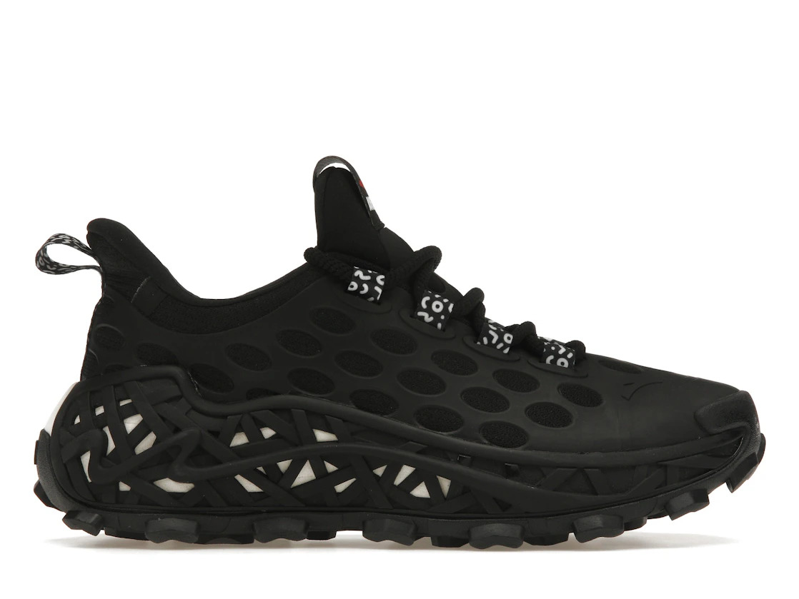 The Anta SB-02 Salehe Bembury Black is a shoe released as part of a collaboration between the brand and Versace footwear designer Salehe Bembury. This iteration of the Anta SB-02 is made with a black textile base for the upper. A matte black overlay covers most of the upper though, and on the sides of the shoe large circular cutouts reveal the black textile underneath. White designs contrast with the black around the eyestays, and the tongue sports Anta branding in white and red. The heel features a black and white pull tab. The midsole features the ANTA A-Shock cushioning system for support and comfort, and the design is made with flash foam. The midsole features a somewhat chaotic design, with black lines overlapping each other and revealing flashes of white under the heel and arch. What we like best about this sneaker is the design of the midsole, which is not only functional, but is perhaps the most eye-catching piece of the shoe. The Anta SB-02 Salehe Bembury Black was released on January 26, 2021, and retailed for $90. - Style 112118820-4 - Colorway Black/Black-Black - Retail Price 90 - Release Date 2021-01-26 - Featured false
