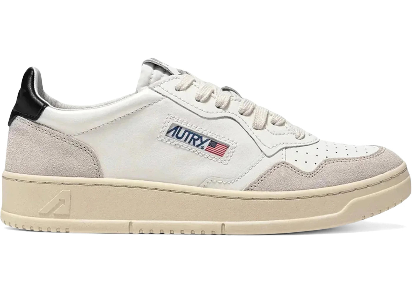 MEDALIST LOW SNEAKERS IN WHITE AND BLACK LEATHER AND BEIGE SUEDE