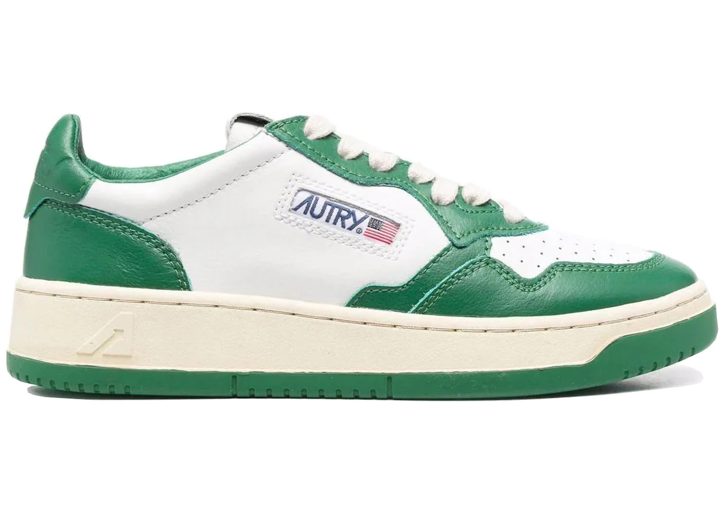 Autry Medalist Leather Low White Green (Women's)