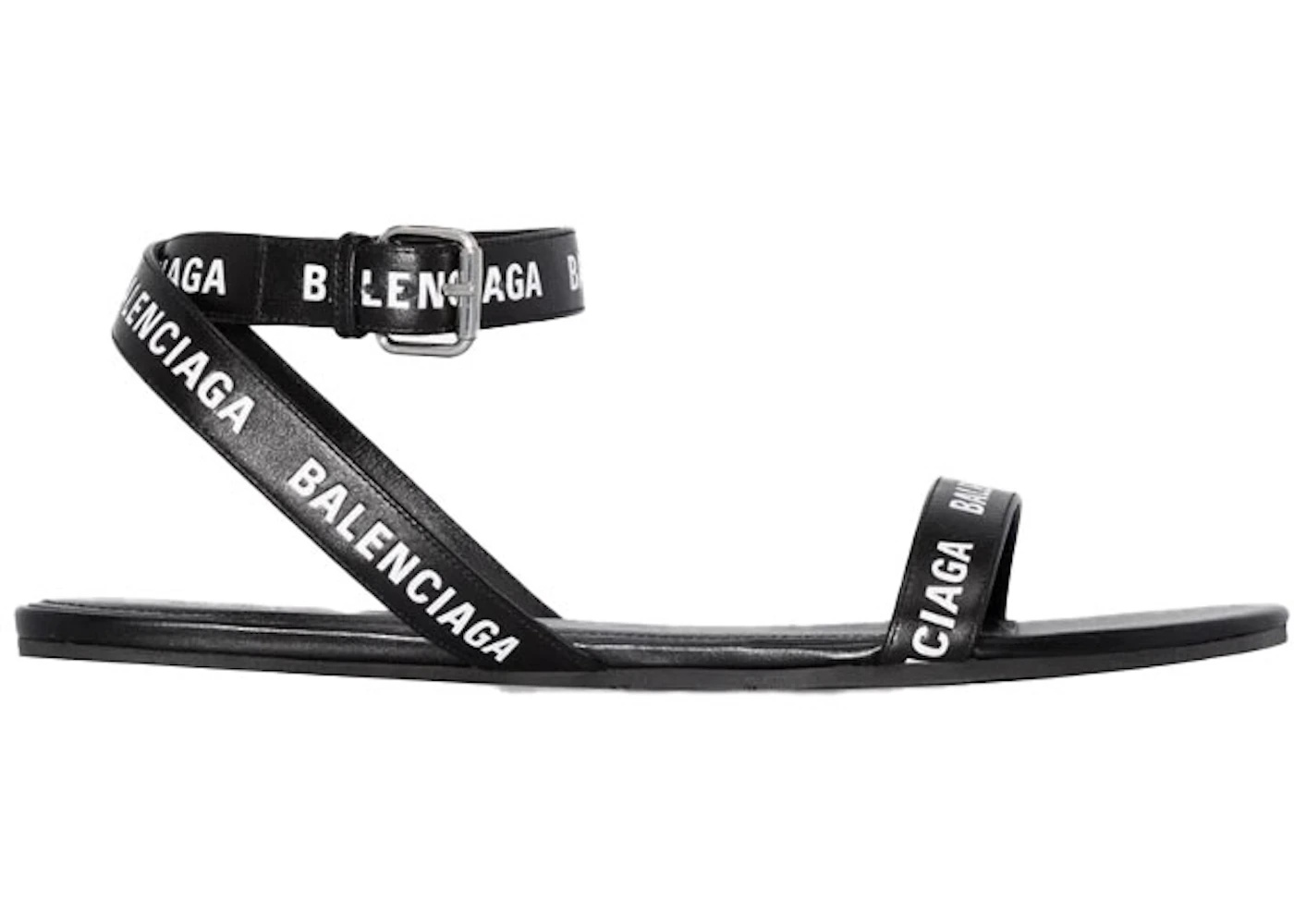 Balenciaga Black Logo Print Sandals Black Leather