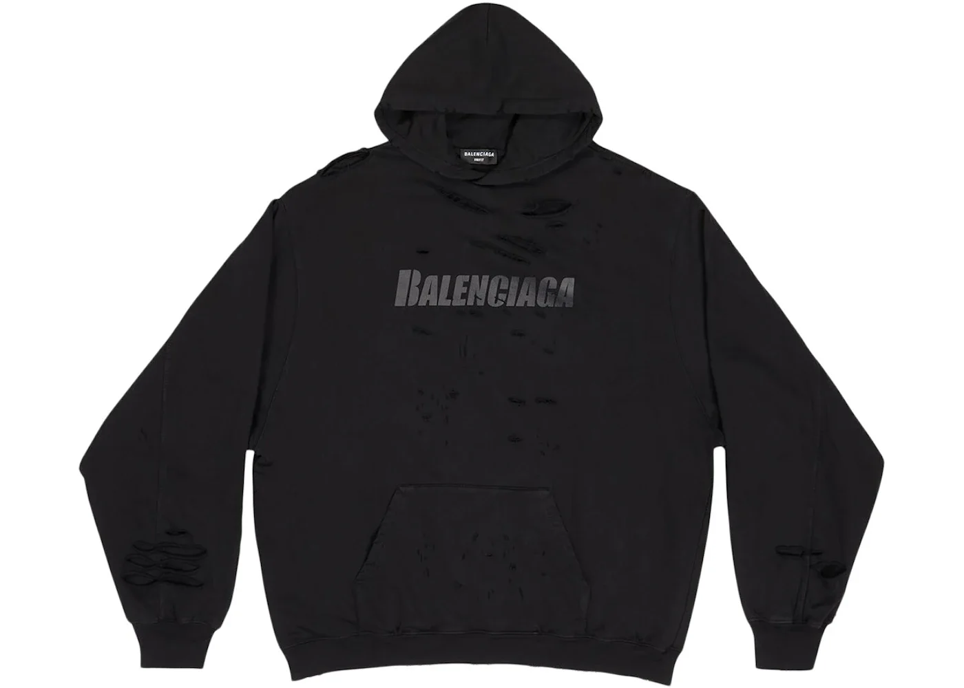 Balenciaga Caps Destroyed Oversize Fit Hoodie Black/Black
