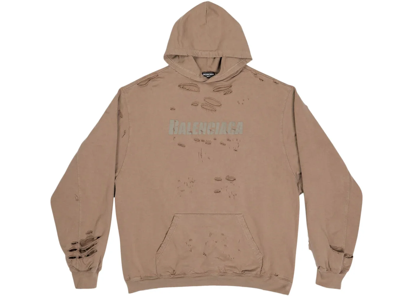 Balenciaga Caps Destroyed Oversize Fit Hoodie Dark Beige/Khaki