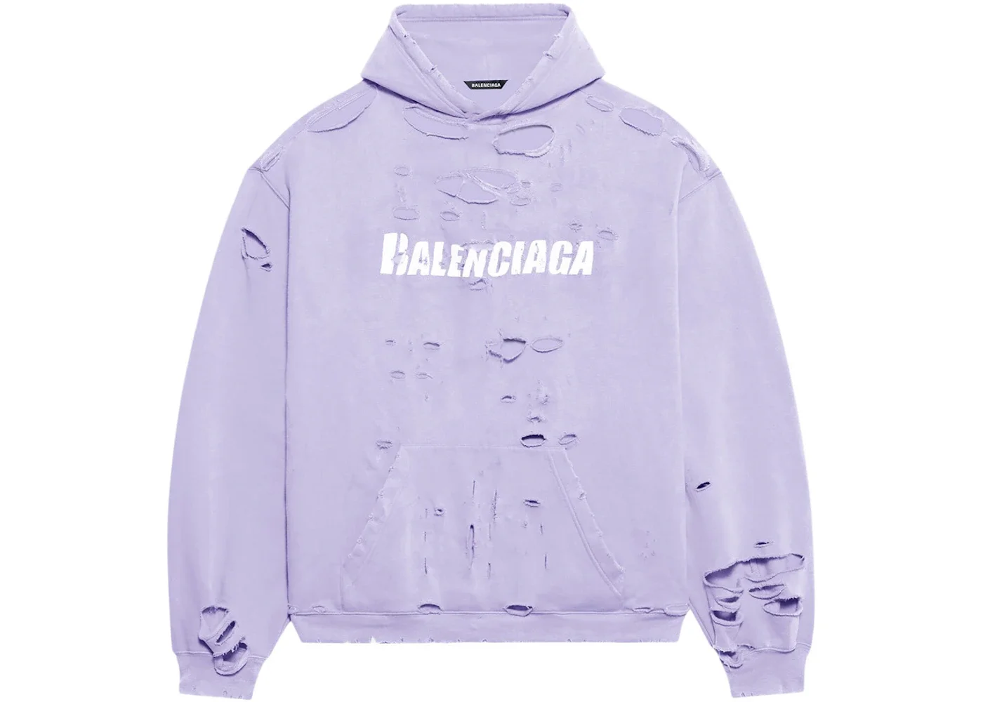 Balenciaga Caps Destroyed Oversize Fit Hoodie Light Purple/White