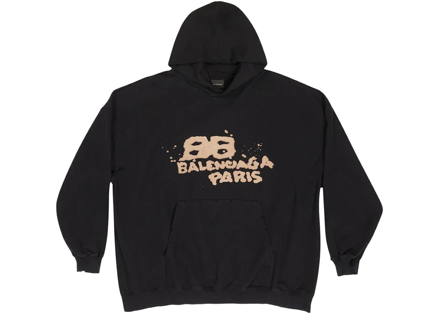 Balenciaga Hand Drawn BB Icon Large Fit Hoodie Black