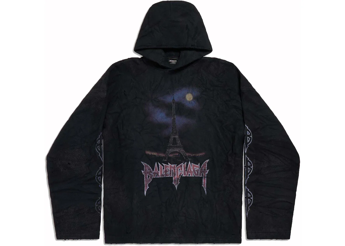 Balenciaga Paris Moon Crinkled Hoodie Large Fit Black