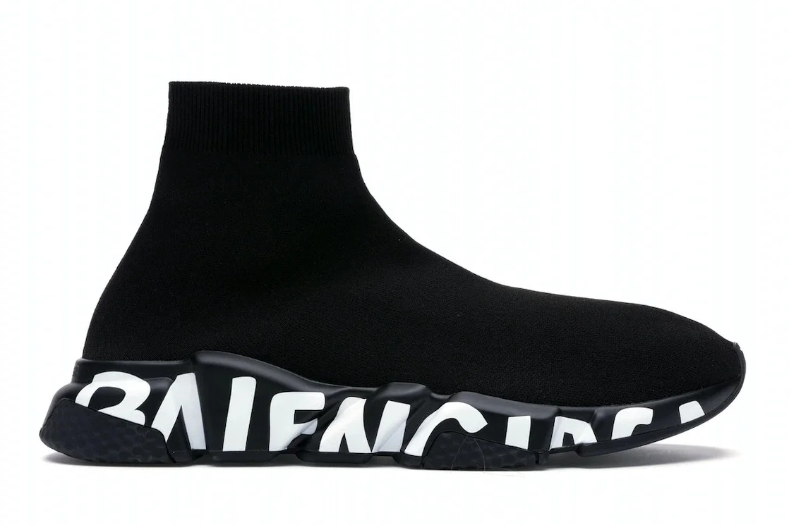 Although Balenciaga hasn't released many sneakers throughout its history, it has introduced quite a few of them over the last decade. The Balenciaga Speed Graffiti Trainers Black is one of the most recent additions to the collection, as it was unveiled in 2022. From its innovative sock-like design to the graffiti logos found on its soles, the Speed Graffiti Trainers include many features that hadn’t yet been seen in other shoes from Balenciaga. The sneakers are constructed out of lightweight materials designed to make people feel like they aren’t wearing shoes at all. Our favorite feature in this sneaker from Balenciaga is the ergonomic sole equipped with "No Memory" technology. It allows the soles to bounce back after the shoes are worn so that they remain comfortable the next time they are put on. The Balenciaga Speed Graffiti Trainers Black released on 21st March 2022 and retailed for $795. - Style 605972W05GE1006/645334W2DB71006 - Colorway Black/White - Retail Price 795 - Release Date 2022-03-21 - Featured false