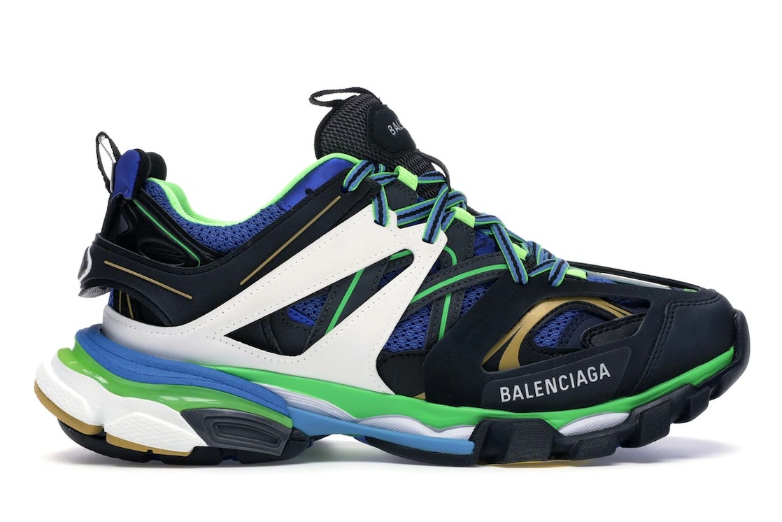 The Balenciaga Track Green White Blue is a highly sought-after sneaker that was released on January 1, 2019, with a retail price of $775. The shoe features a unique design that combines various materials, including mesh, nylon, and rubber, to create a comfortable and durable shoe that is perfect for everyday wear. The shoe's colorway is a combination of green, white, and blue, which gives it a fresh and modern look that is sure to turn heads. The shoe's upper is made of a breathable mesh material that allows for maximum airflow, while the rubber sole provides excellent traction and support. One of the standout features of the Balenciaga Track Green White Blue is its unique lacing system, which allows for a customized fit that is both secure and comfortable. The shoe also features a padded collar and tongue, which adds to its overall comfort and support. Something we love about the Balenciaga Track Green White Blue is its attention to detail and quality craftsmanship. Our experts think that the shoe's combination of materials and colors make it a standout piece in any sneaker collection. Overall, we love the Balenciaga Track Green White Blue for its unique design, comfort, and durability. - Style 542023 W1GB1 1097/542023 W1GB3 1097 - Colorway Green/White-Blue - Retail Price 775 - Release Date 2019-01-01 - Featured false
