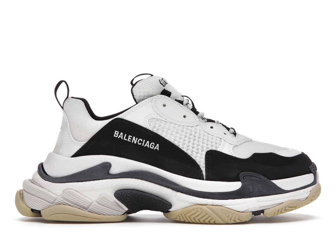 The Balenciaga Triple S White Black is a study in contrasts, featuring a pristine white upper starkly juxtaposed with black detailing, embodying the essence of minimalist sophistication. This sneaker is a visual representation of Balenciaga's ability to merge simplicity with complexity, offering a silhouette that is both striking and nuanced. Designed for those who seek to make a refined statement, the Triple S White Black is a hallmark of contemporary luxury sneaker design.This iteration of the Triple S maintains the signature features that have cemented the silhouette's iconic status, including the layered sole. The black accents provide a dynamic visual balance, emphasizing the sneaker's architectural lines and the meticulous craftsmanship that goes into each pair.Launched on January 1, 2019, for $975, the Balenciaga Triple S White Black captured the imagination of the fashion world, becoming a must-have for collectors and style connoisseurs. Its introduction is a testament to Balenciaga's continued influence in shaping sneaker trends, offering a piece that combines the brand's avant-garde approach with a timeless color scheme. - Style 536737 W09OM 9058 - Colorway White - Retail Price 975 - Release Date 2019-01-01 - Featured false