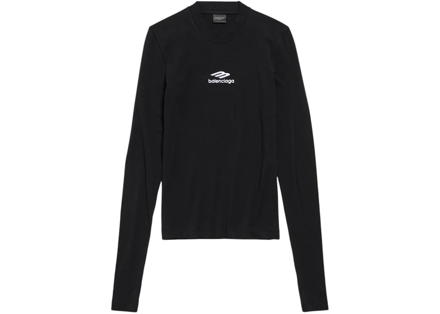 Balenciaga Women's 3B Sports Icon Long Sleeve Fitted Crewneck Top Black/White