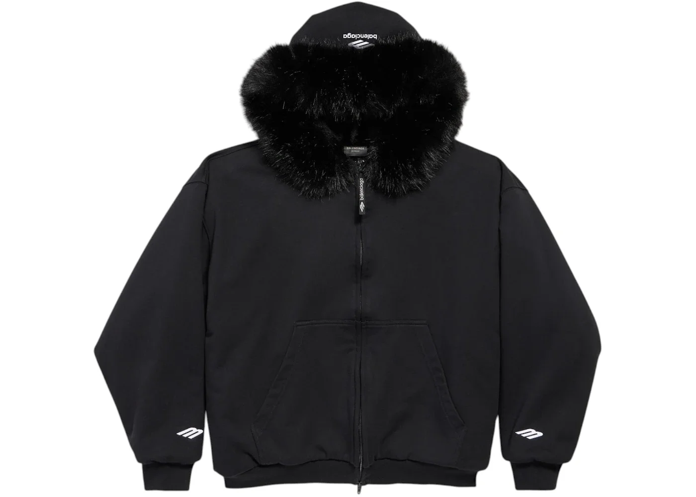 Balenciaga Women's Fluffy Zip-Up Fleece Hoodie Washed Black
