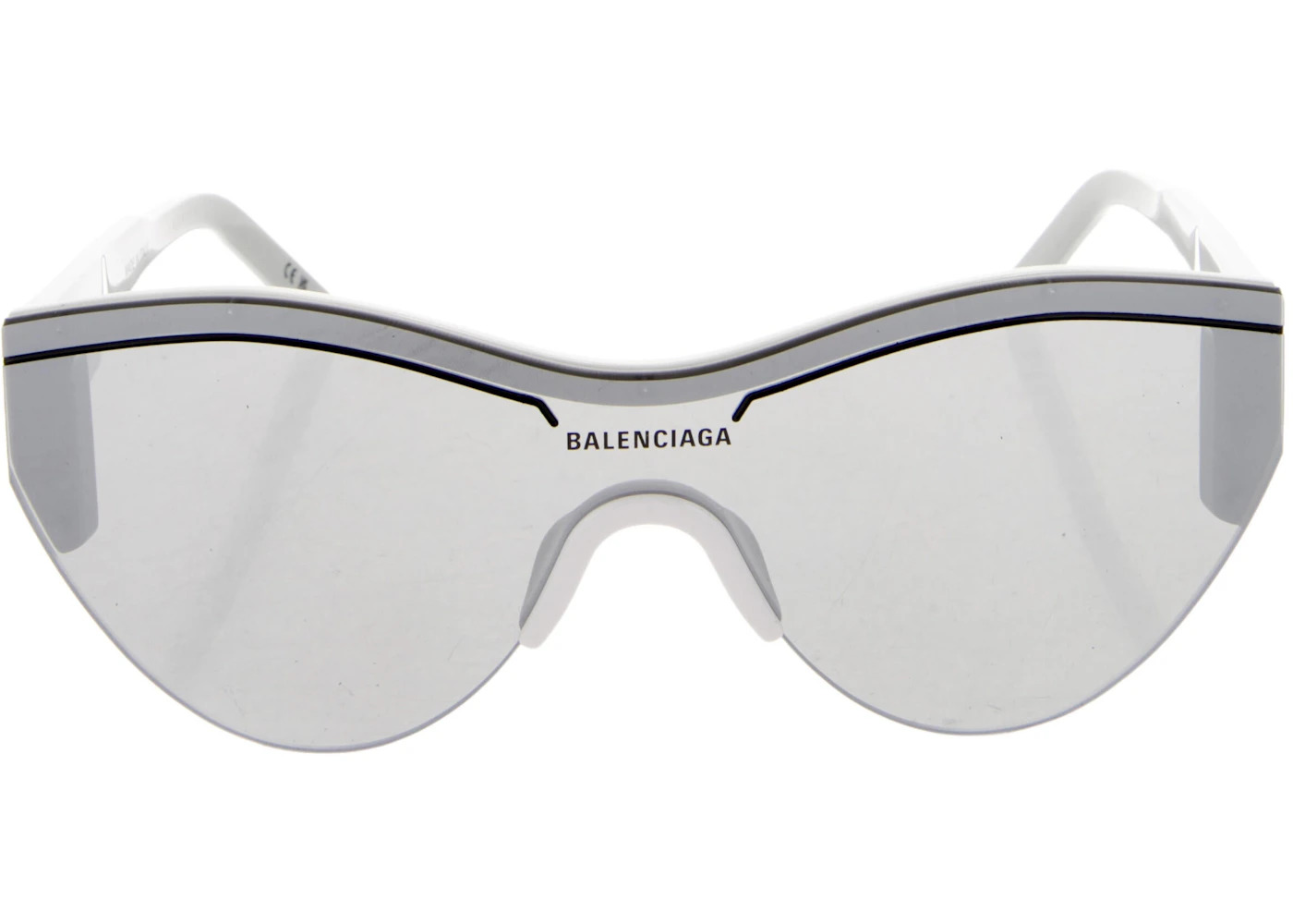 Balenciaga Wrap Frame Mirrored Shield Sunglasses White